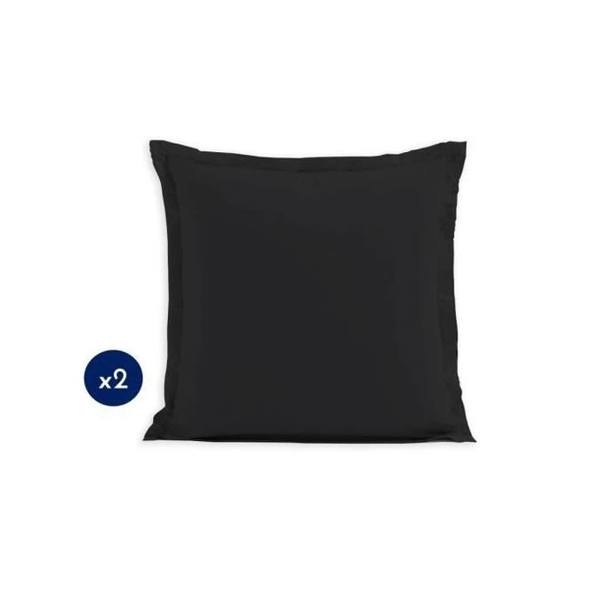 SOLEIL D’OCRE Lot 2 Taies D’oreiller Rectangle US 50×75 Cm En Coton Uni 57 Fils – Anthracite