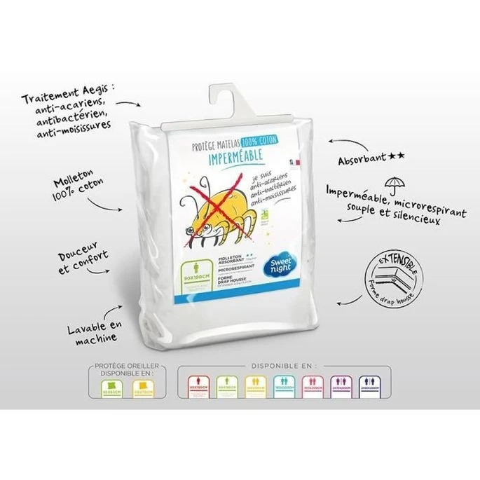 SWEETNIGHT Protege-matelas Imperméable AXEL 180×200 Cm – Blanc